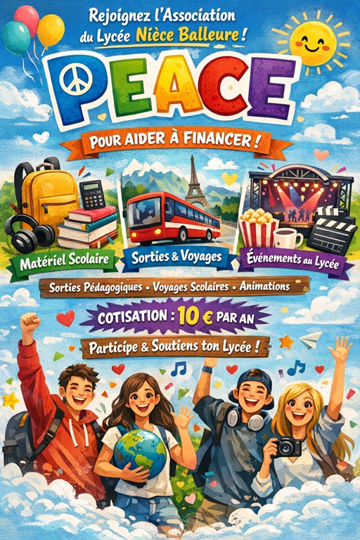 L’association PEACE est l’équivalent du Foyer Socio Éducatif : elle contribue à mener des actions à destination des lycéens en apportant une contribution financière pour les différents types de projets menés.