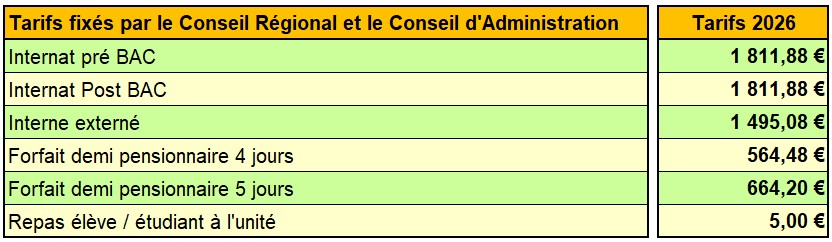 L’internat est réservé aux lycéens et aux étudiantsde la CPGE (22 places dans un dortoir indépendant.